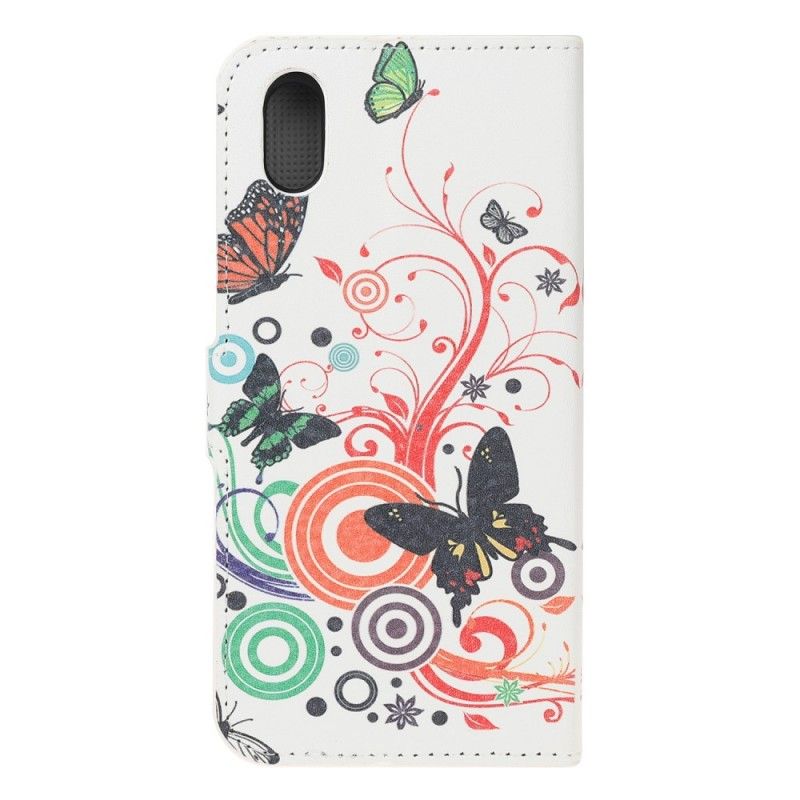 Lederhüllen Huawei Y5 2019 Schwarz Schmetterlinge Und Blumen