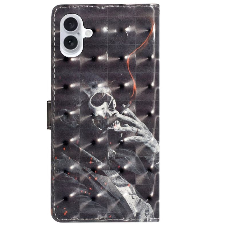 Lederhüllen iPhone 16 Plus Rauchendes Skelett Mit Riemen