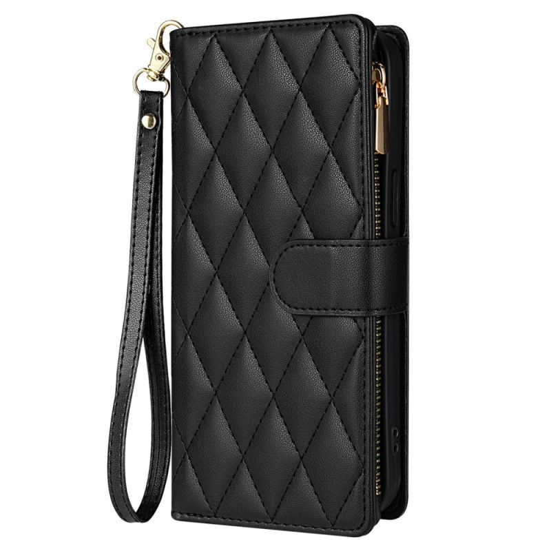 Lederhüllen iPhone 16 Pro Gesteppte Geldbörse Mit Riemen