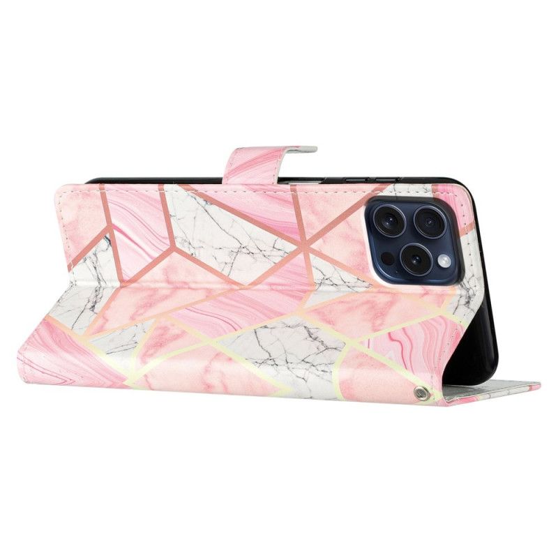 Lederhüllen iPhone 16 Pro Handyhülle Rosa Marmor Mit Riemen