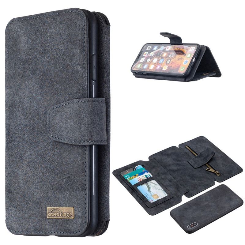 Lederhüllen iPhone XS Max Schwarz Handyhülle Abnehmbare Binfen Color Design Abdeckung