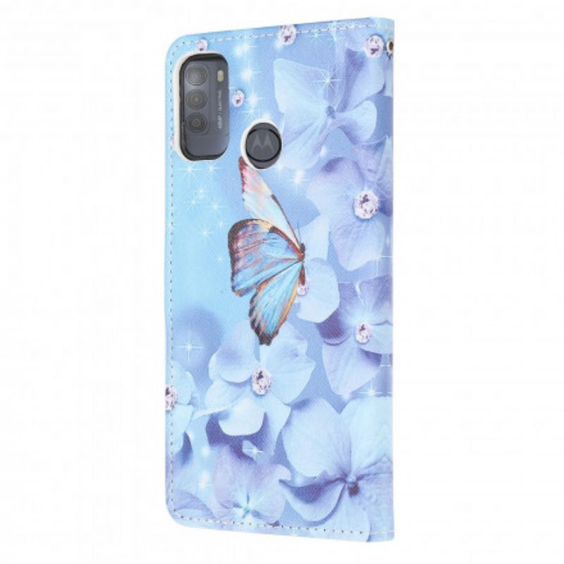 Lederhüllen Moto G50 Handyhülle Diamond Riemchenschmetterlinge