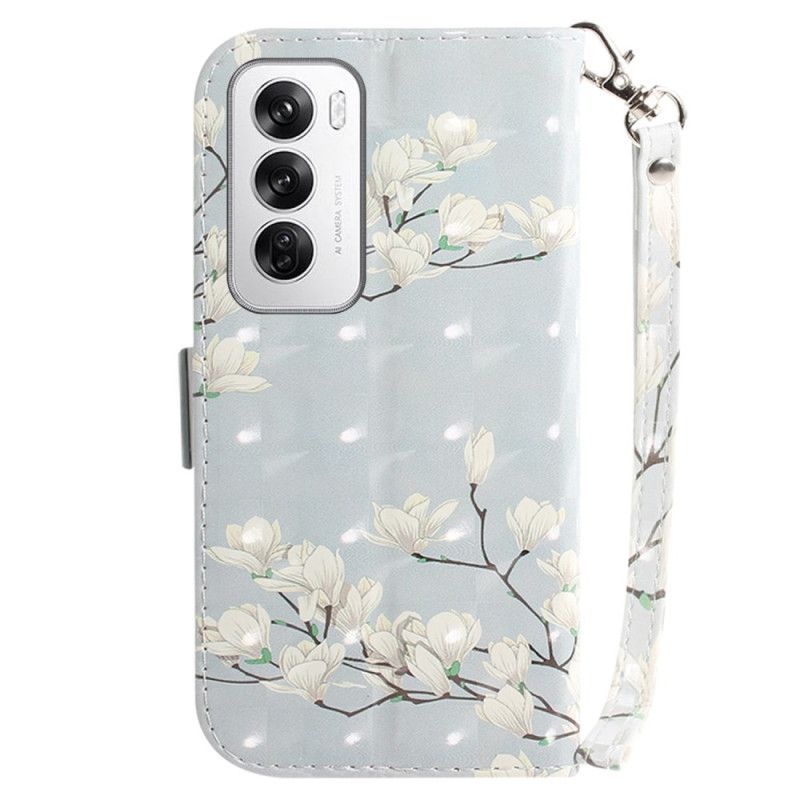Lederhüllen Oppo Reno 12 5g Handyhülle Gestreifte Magnolien