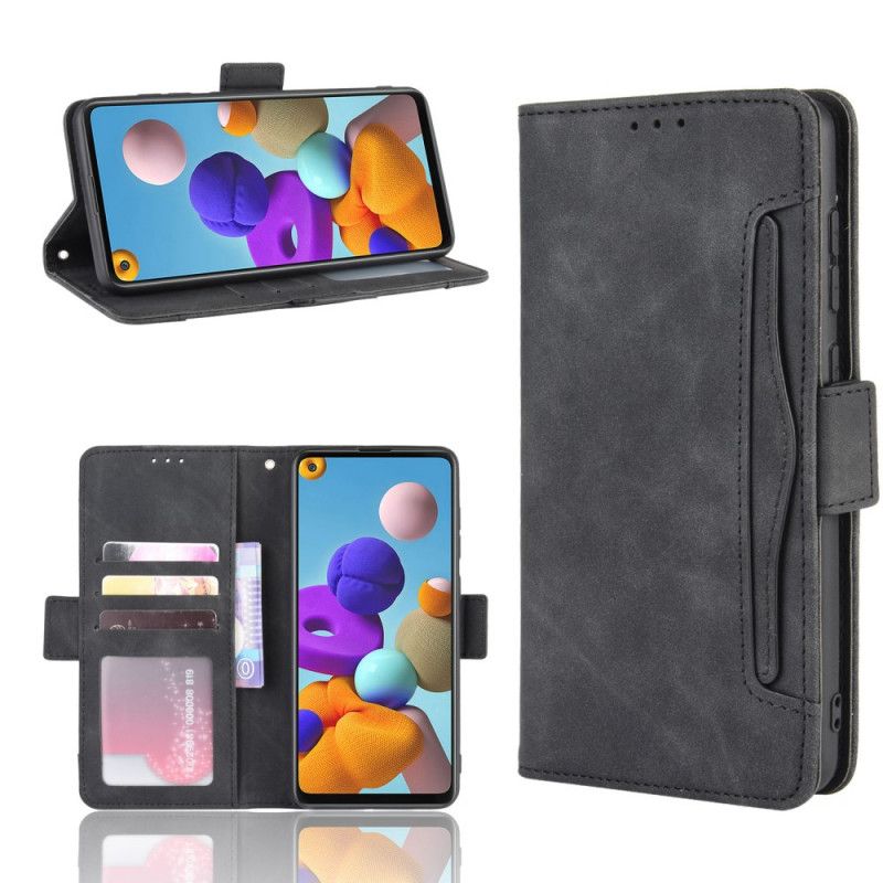 Lederhüllen Samsung Galaxy A21S Schwarz Erstklassige Mehrfachkarte
