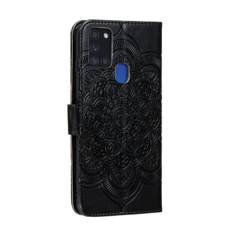 Lederhüllen Samsung Galaxy A21S Schwarz Gesamtes Mandala
