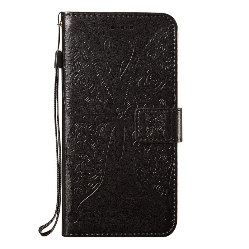 Lederhüllen Samsung Galaxy A52 4G / A52 5G Schwarz Schmetterlingsblumenmuster