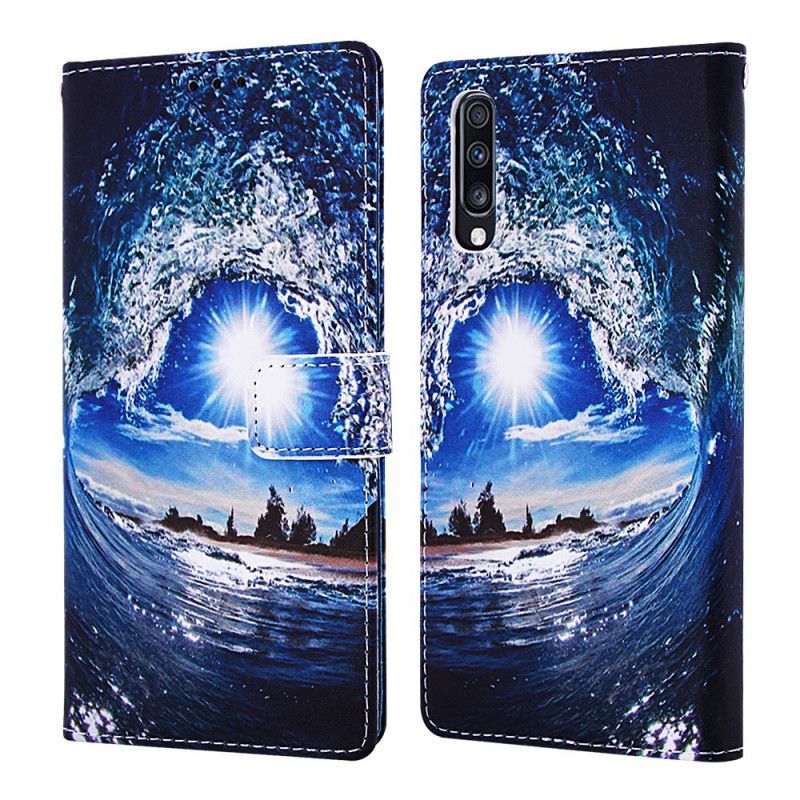 Lederhüllen Samsung Galaxy A70 Marineblau Landschaftsträumereien Mit Riemen