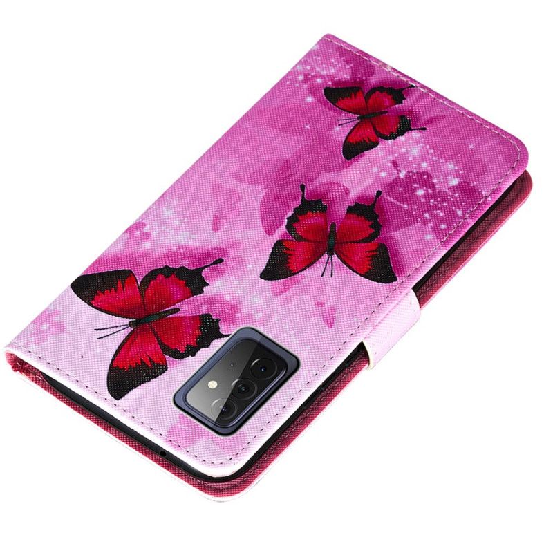 Lederhüllen Samsung Galaxy A72 4G / A72 5G Magenta Strukturierte Kunstlederschmetterlinge