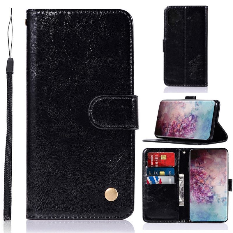 Lederhüllen Samsung Galaxy Note 10 Plus Schwarz Handyhülle Vintage Ledereffekt Mit Riemen