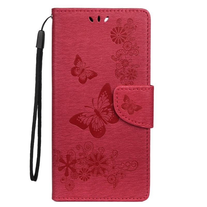 Ein hochwertiger Bezug aus Kunstleder, verziert mit wunderschönen Schmetterlingen, der mit einem Sehr nützlicher Gurt zum Tragen des Samsung Galaxy S20 Ultra.