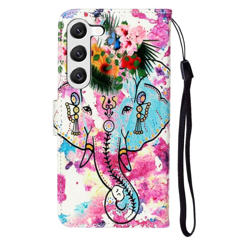 Lederhüllen Samsung Galaxy S24 5g Handyhülle Blumenelefant Mit Riemen