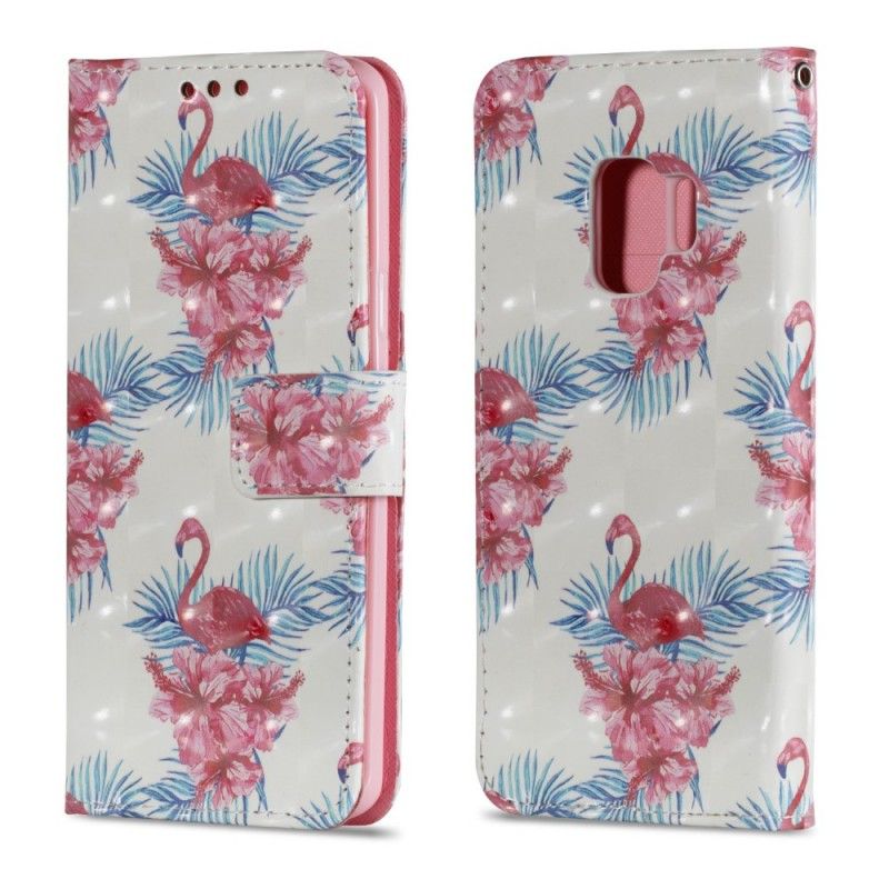 Lederhüllen Samsung Galaxy S9 Weiß Mehrere Flamingos