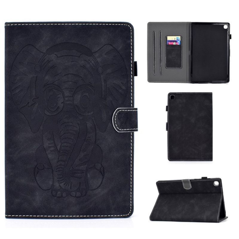 Lederhüllen Samsung Galaxy Tab S6 Lite Schwarz Ledereffekt Mit Elefantendruck