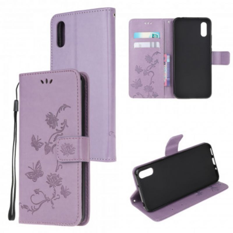 Lederhüllen Samsung Galaxy Xcover 5 Schmetterlinge Und Blumen Riemchen
