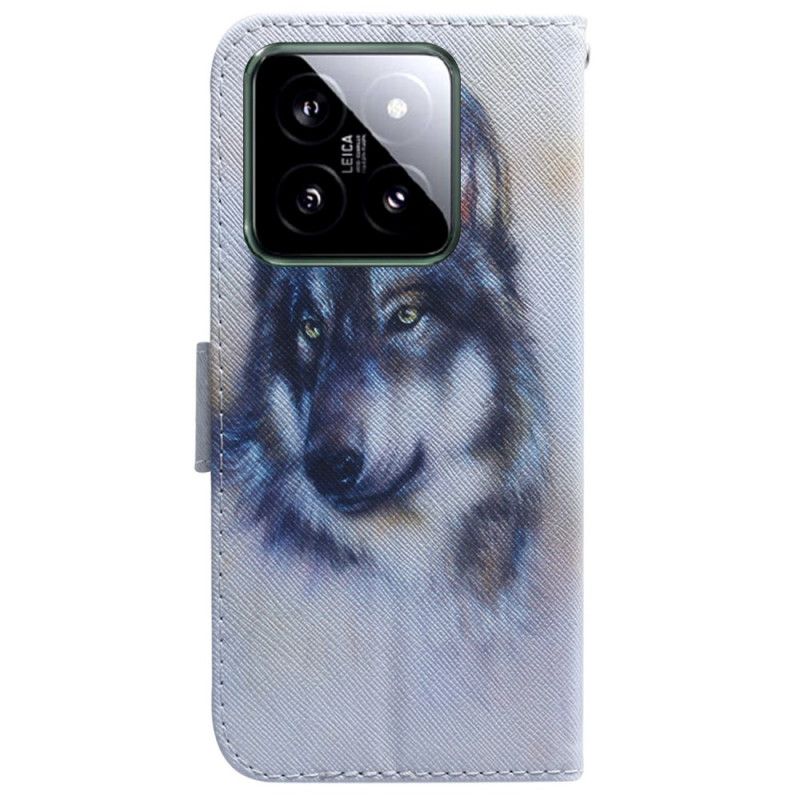 Lederhüllen Xiaomi 14 Wolf-aquarell