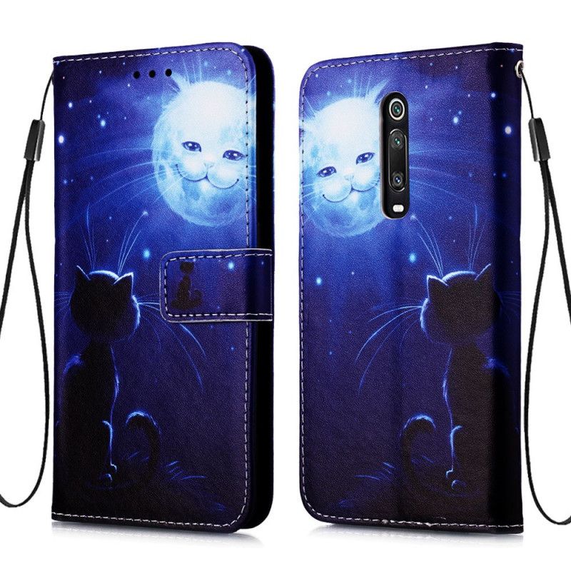 Sichern Sie Ihr Xiaomi Mi 9T / Mi 9T Pro mit dieser Hülle, die mit einer sehr niedlichen Katze verziert ist das Mondlicht, das mit einem abnehmbaren Riemen geliefert wird.