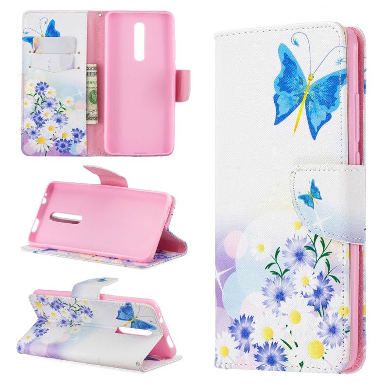 Lederhüllen Xiaomi Mi 9T / Mi 9T Pro Hellblau Bemalte Schmetterlinge Und Blumen