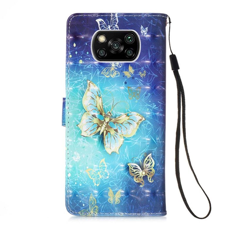 Lederhüllen Xiaomi Poco X3 Goldene Schmetterlinge