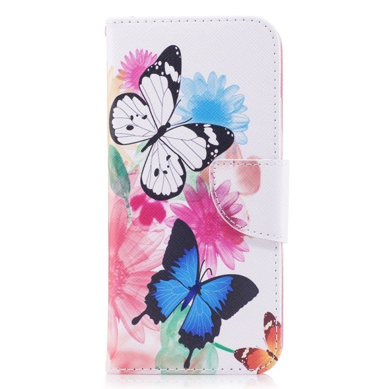 Lederhüllen Samsung Galaxy A8 Blauer Schmetterling